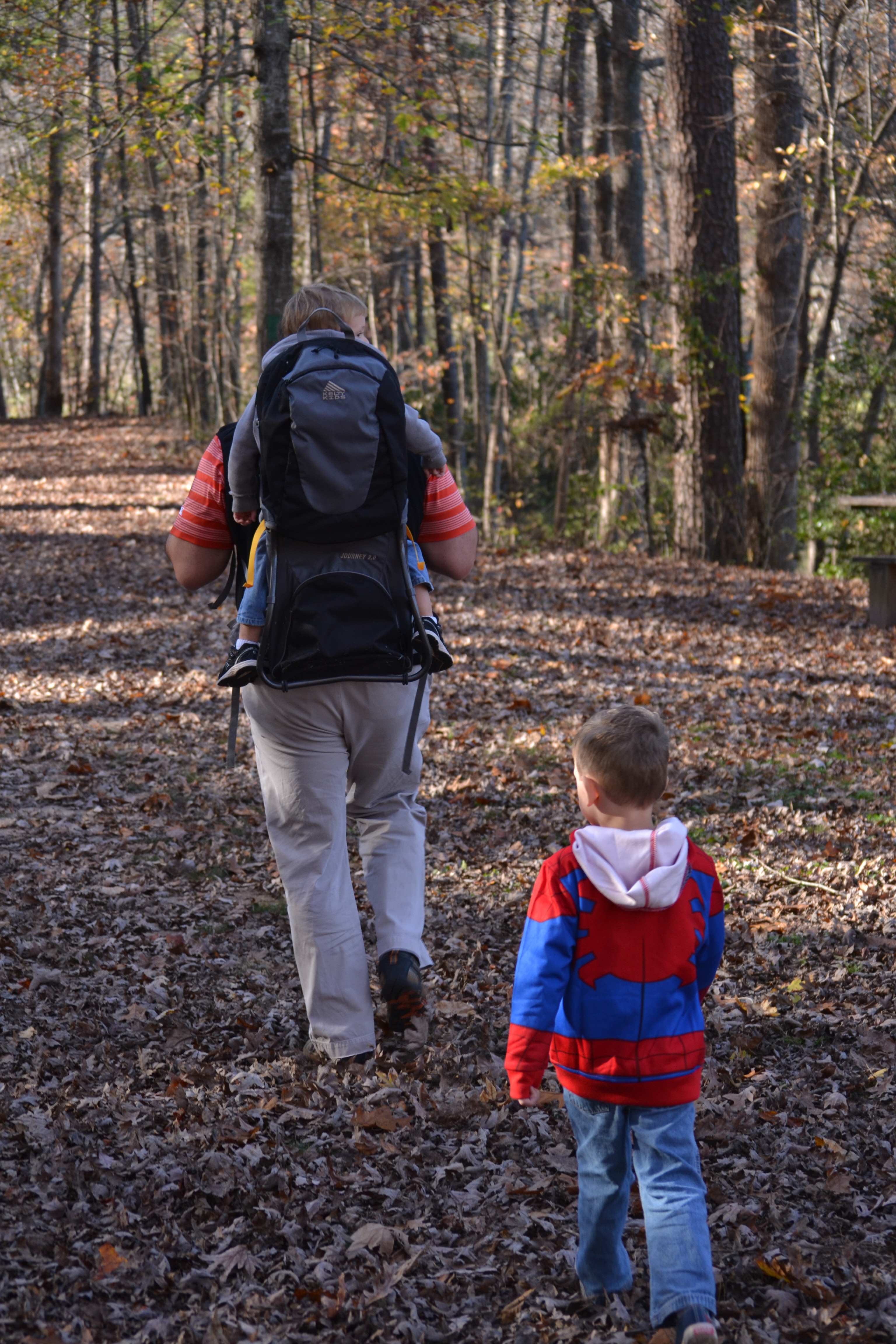 My husband gallantly and a bit exhaustingly, I might add, cut down the tree, loaded it onto the cart, and trucked it off. The entire event took a mere 30 minutes of our time, but was truly an enjoyable experience. Davey created a song to the tune of “Going on a Bear Hunt”, while Henry did his best to keep up on the walk.